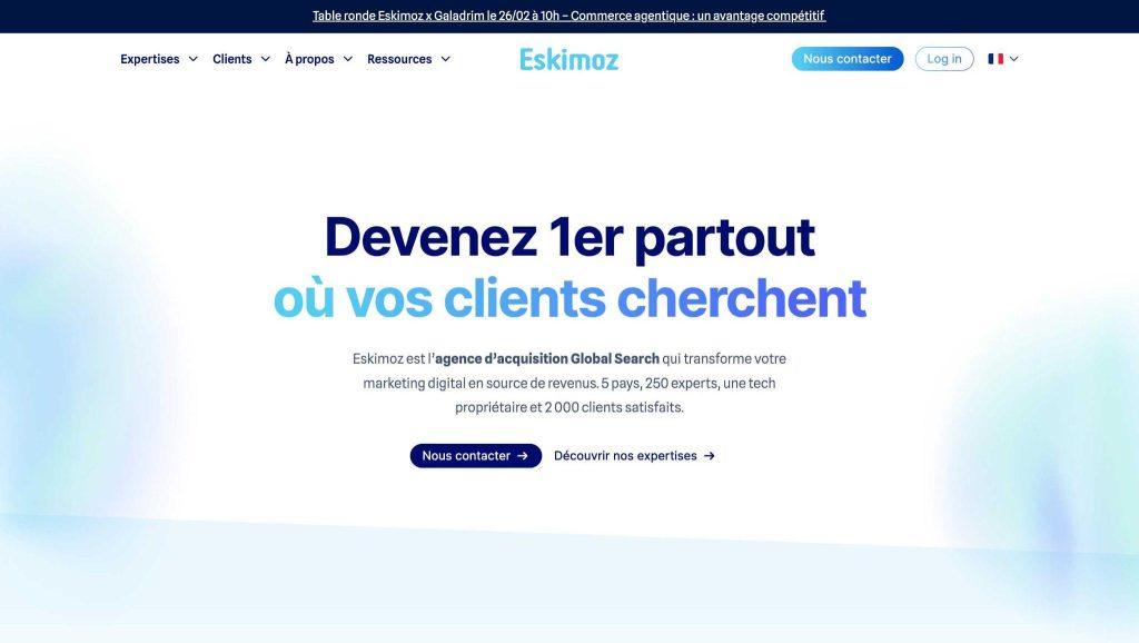 Eskimoz s’impose comme la plus grande agence SEO d’Europe avec une approche Global Search intégrant SEO, Paid Media et Data. Parmi les principaux avantages d’Eskimoz comme agence SEO internationale, nous pouvons mentionner :